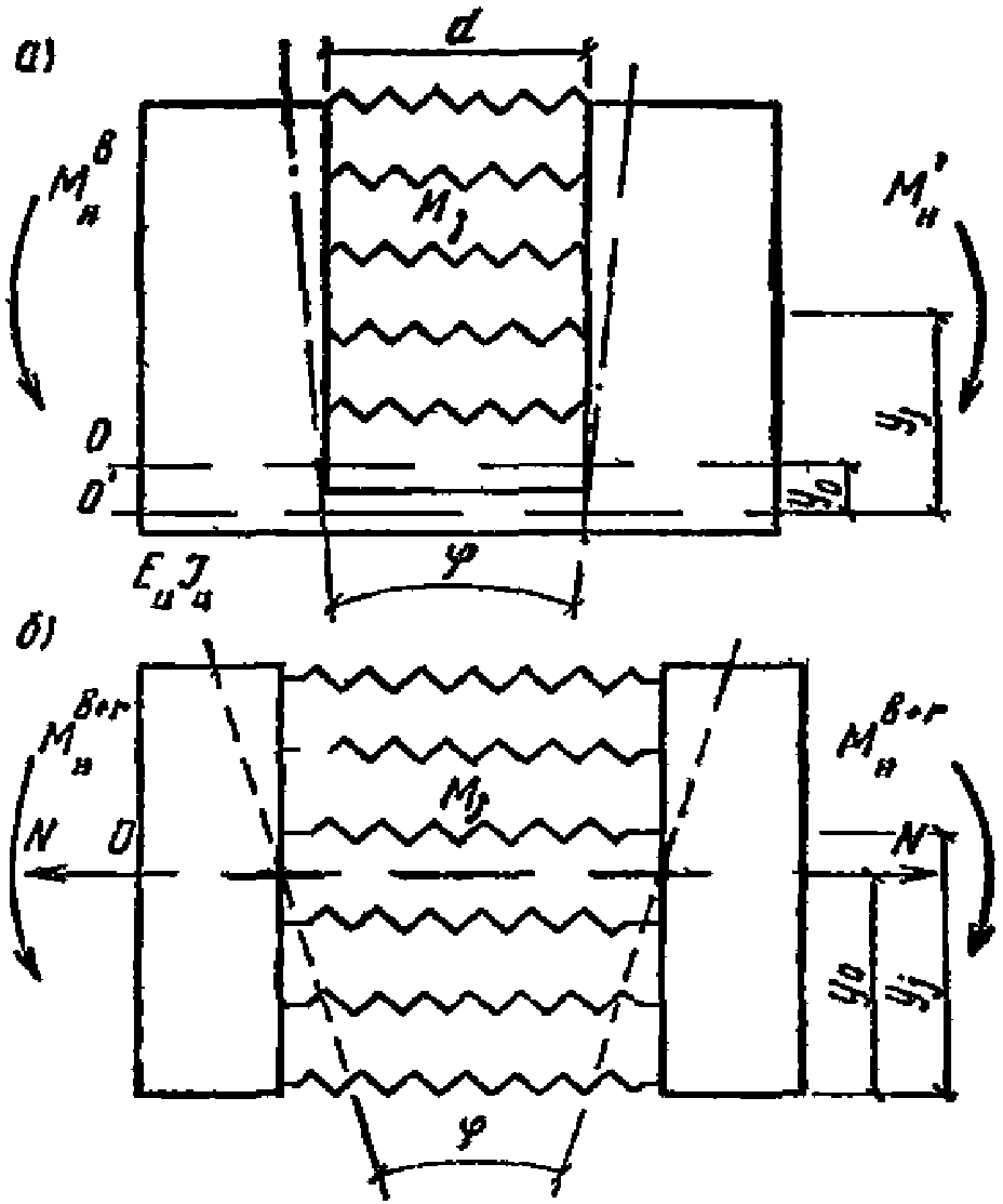 N, N' - усилия предварительного напряжения.