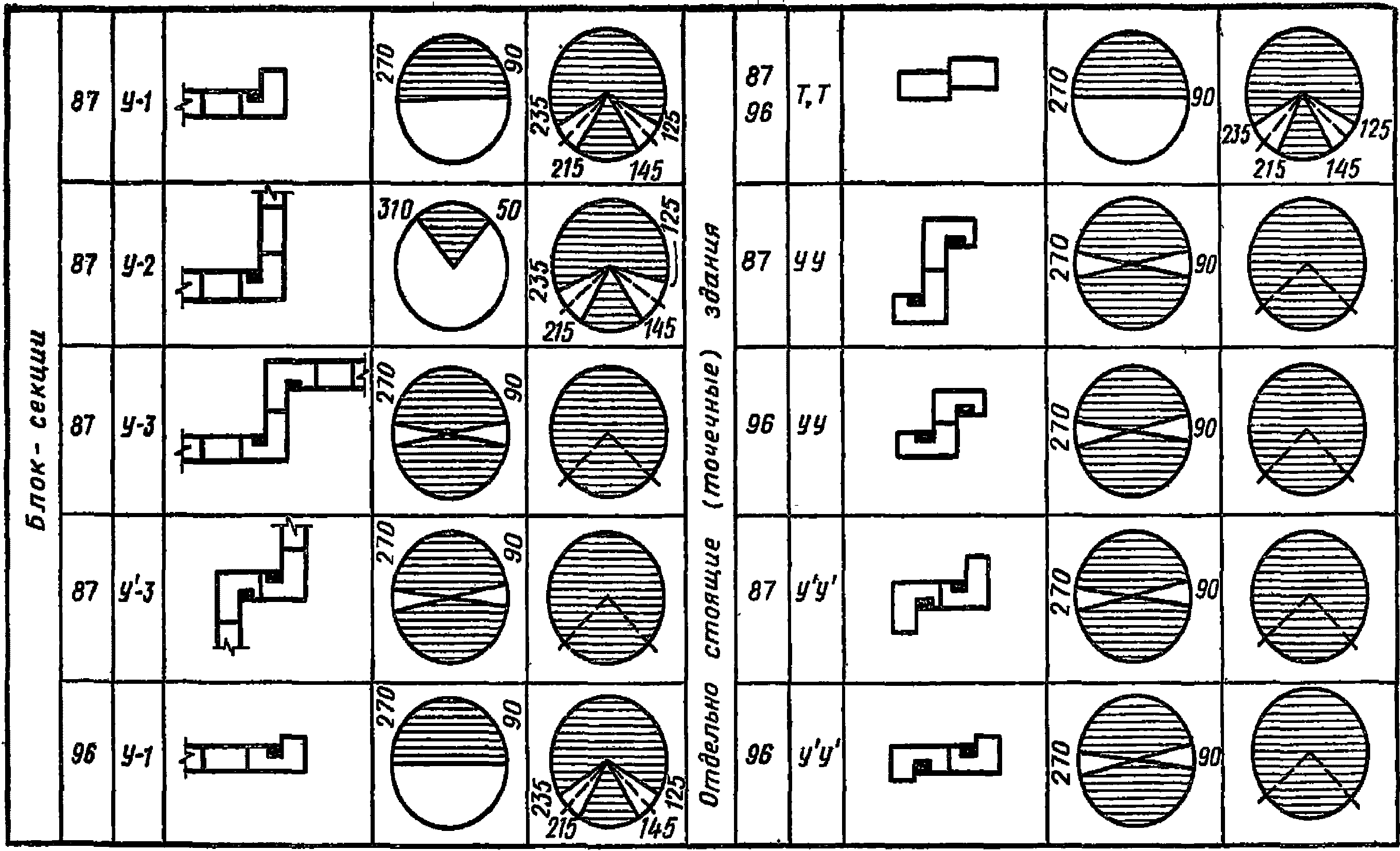 Примечания: 1. Диапазон возможного размещения общественных и жилых зданий повышенной этажности по группам подрабатываемых территорий может быть увеличен по мере разработки для них новых конструктивных мероприятий, пригодных для массового жилищного строительства.
