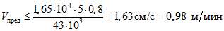 V - рабочая скорость непрерывно формующих устройств, см/с;