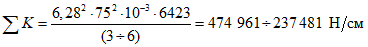 - суммарная жесткость линейных упругих связей или вибрирующих опор, Н/см;