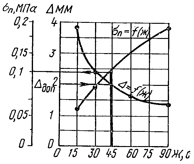 , равную 0,12 МПа, и необходимую исходную жесткость смеси, равную 45 с, при допустимой величине деформаций.