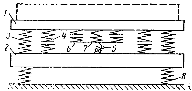 1 - станина; 2 - домкрат; 3 - плита; 4 - индикаторы;