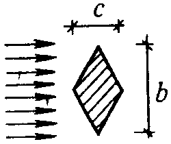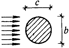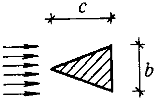 Условия обтекания преграды гидравлическим потоком | Отношение b/c | Значение Cx |