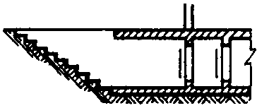 Полы помещений убежищ, располагаемых в водонасыщенных грунтах, должны иметь уклон 1 - 2% в сторону лотков, а последние - 2 - 3% в сторону водосборника, из которого вода должна откачиваться насосом (в убежище без ДЭС - ручным насосом).