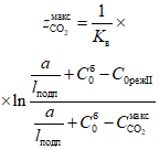 9. Нарастание концентрации углекислого газа по времени | Cz | л/м3 | |  - начальная расчетная концентрация CO 2 в момент перехода со II режима на III режим, л/м 3; l2 - минимальная воздухоподача во II режиме, равная 2 м 3/чел.-ч |