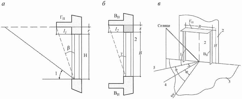 Тип солнцезащитной конструкции | Солнцезащитные углы  и  , градусы (по рисункам И.1, а и И.1, б) |