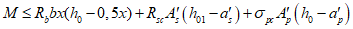 В случае прямого изгиба железобетонного элемента для оценки предельного состояния сечения, нормального к продольной оси, используют два уравнения равновесия - равенство нулю суммы внутренних продольных сил и равенство нулю суммы внешних и внутренних изгибающих моментов.