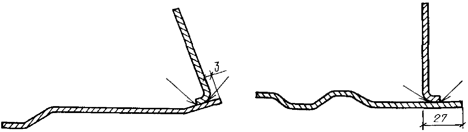 4.6. Сварку конца одной полосы и начало последующей ведут на медной подкладке полуавтоматом типа А537 в среде углекислого газа. При сварке должны быть обеспечены следующие параметры: зазор между кромками не более 0,5 мм, превышение кромок полосы не более 0,2 мм, сварочный ток 80 - 100 А, напряжение дуги 18 - 20 В, скорость сварки 35 - 45 м/ч, вылет электрода 9 мм.