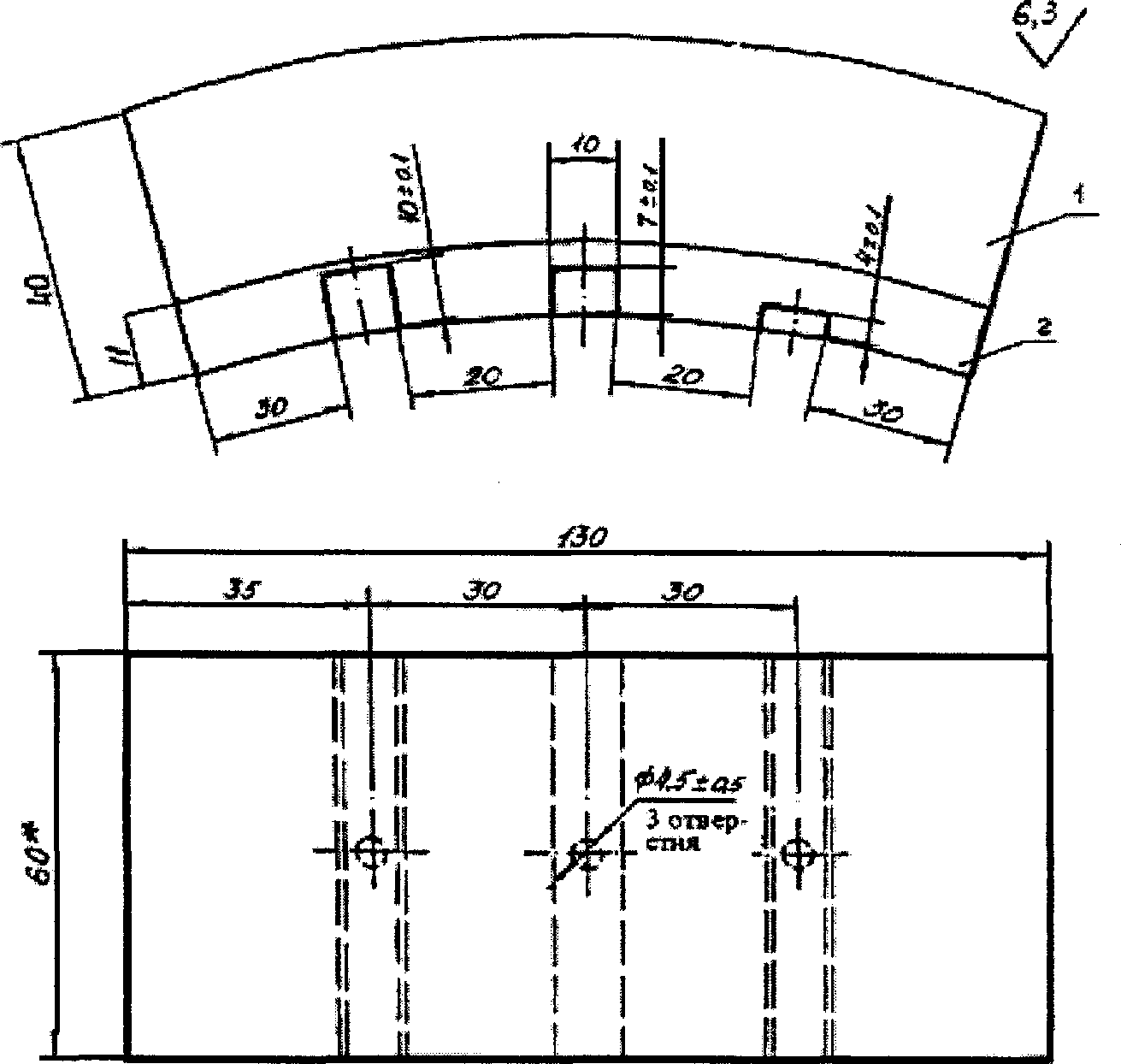 7.7.9. При невозможности измерения толщины плакировки из-за отсутствия сигнала от зоны сплавления такие участки оконтуриваются и составляется эскиз с указанием толщины плакирующего слоя по краям участка и полной толщины в требуемой точке измерения.