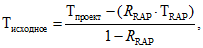 Если Tисходное < Tпроект < TRAP, производят расчет количества RRAP (RAP-вяжущего от количества комбинированного битумного вяжущего в асфальтобетонной смеси с переработанным асфальтобетоном (RAP), в долях) по формуле