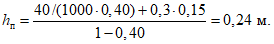 hнас = 0,09·15,04/3,5 = 0,39 м.