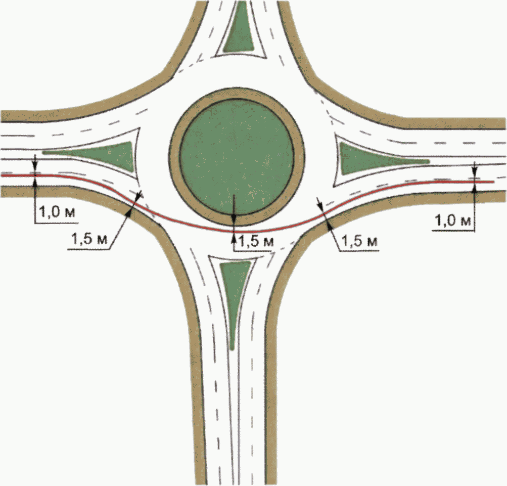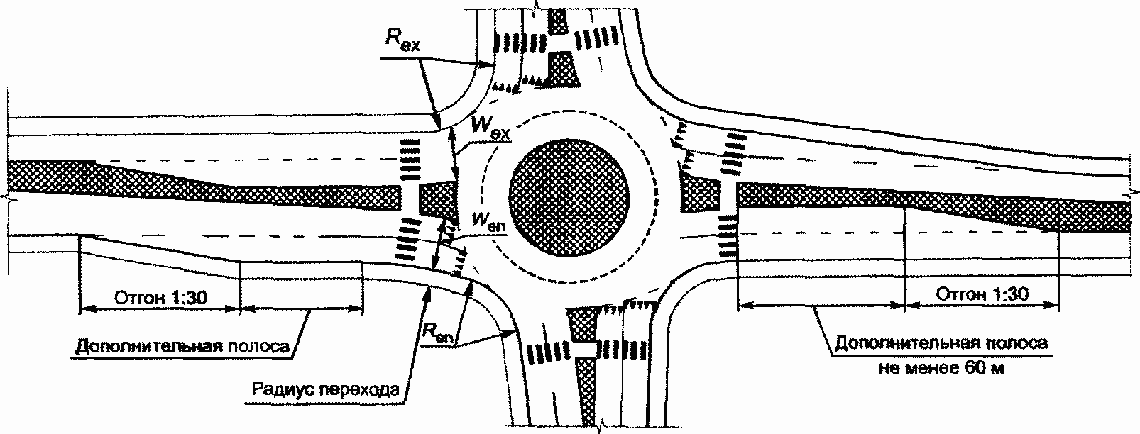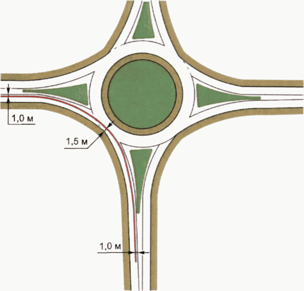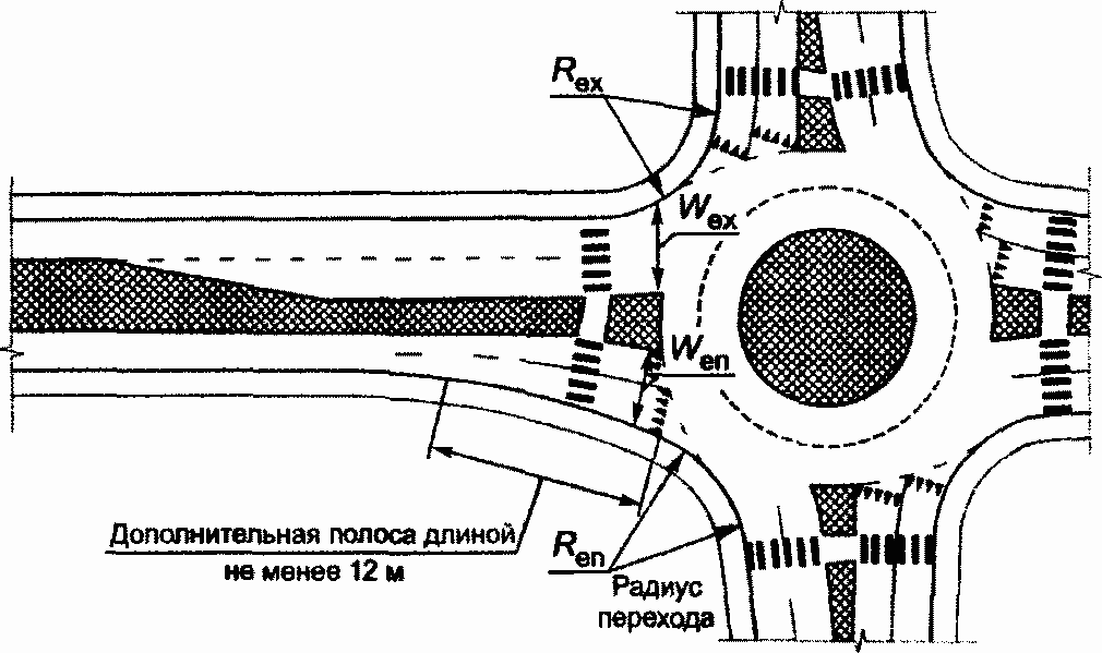 - дополнительных левых или правых полос на въезде на кольцевое пересечение;