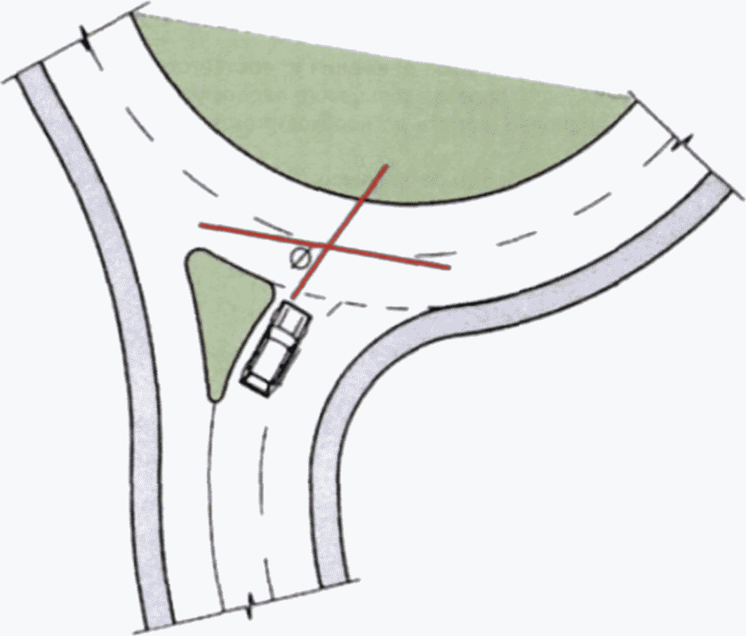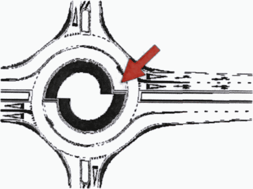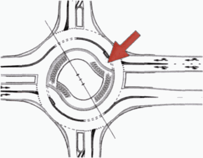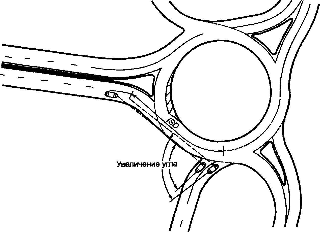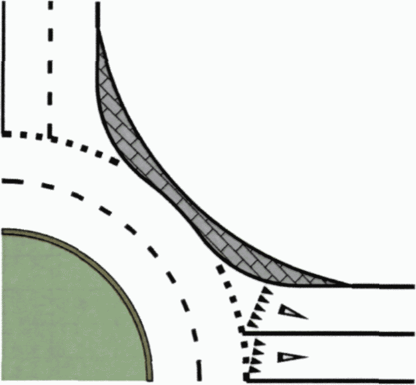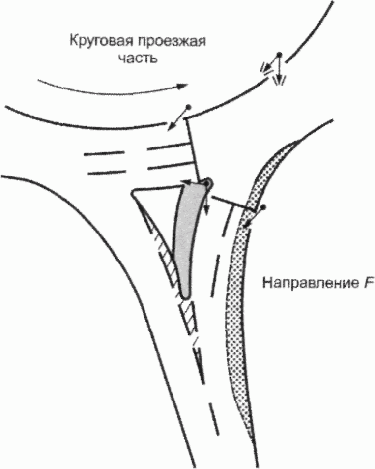 Е.4.2 Устройство дополнительной левой полосы на въезде на кольцевое пересечение, как показано на