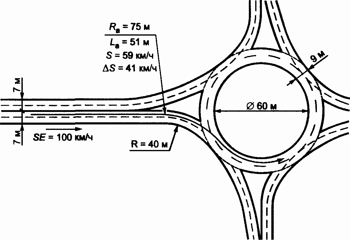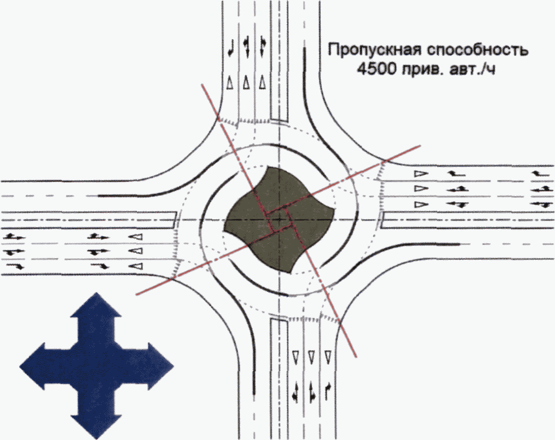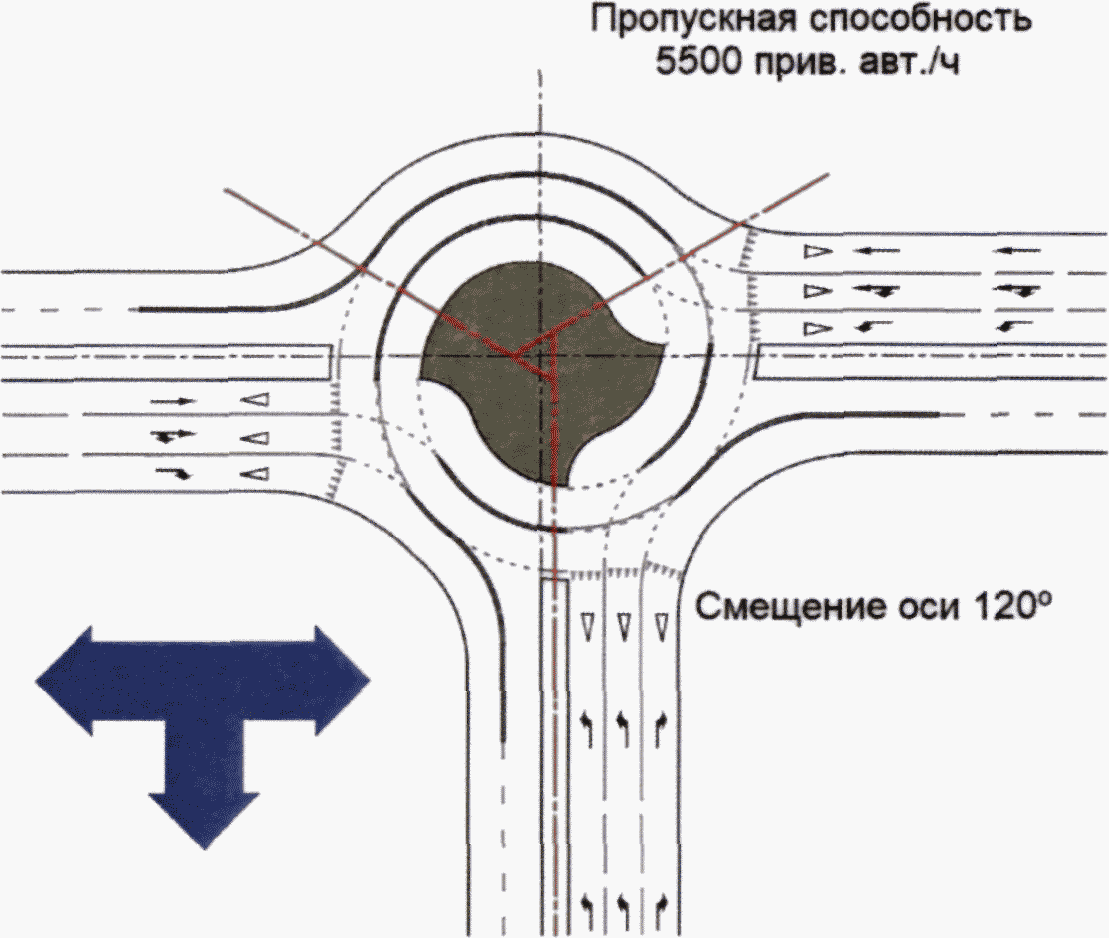 Рисунок Е.3 - Пример крупного кольцевого пересечения