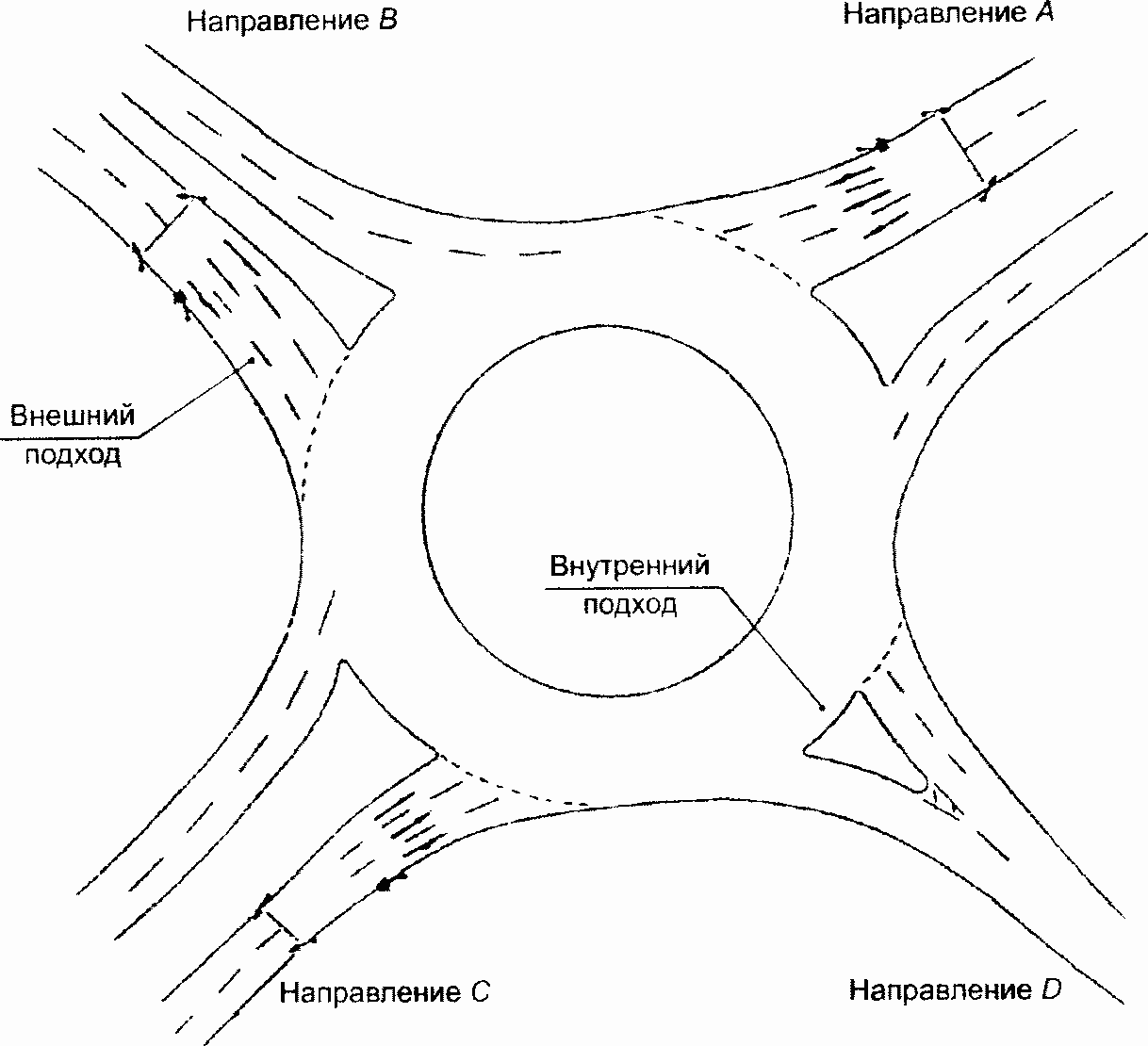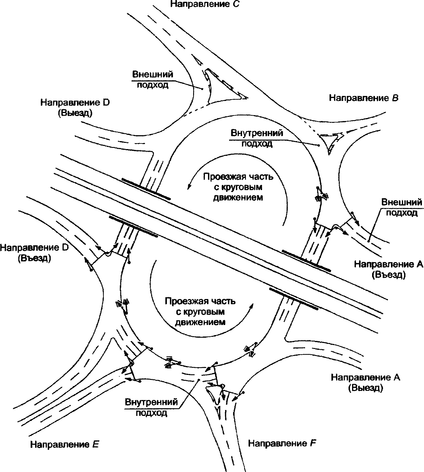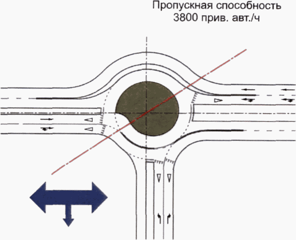 Рисунок Е.4 - Кольцевое пересечение с непрямым