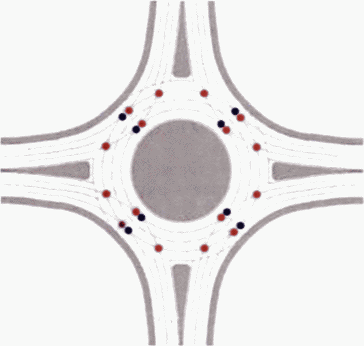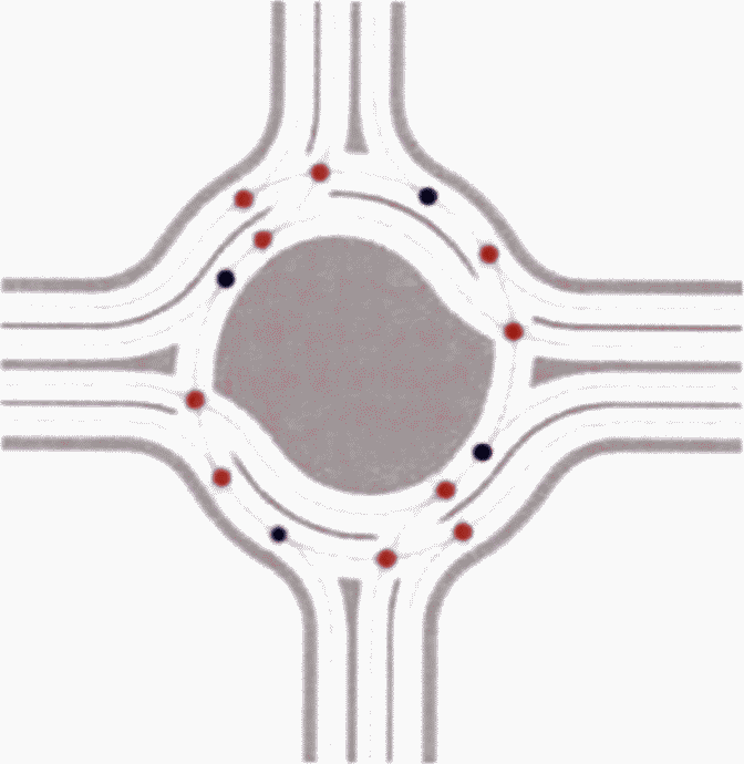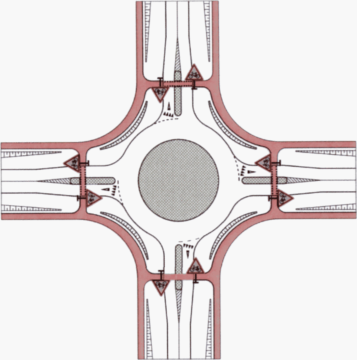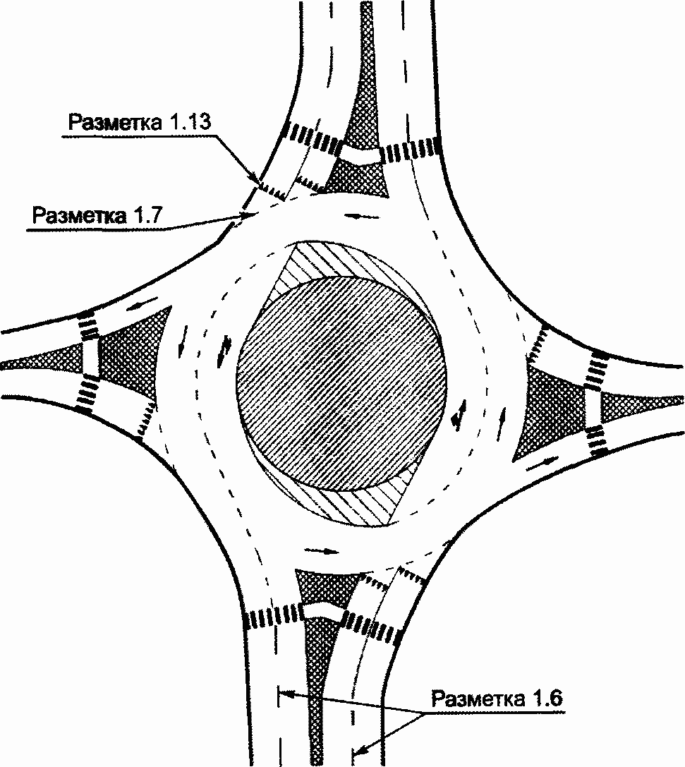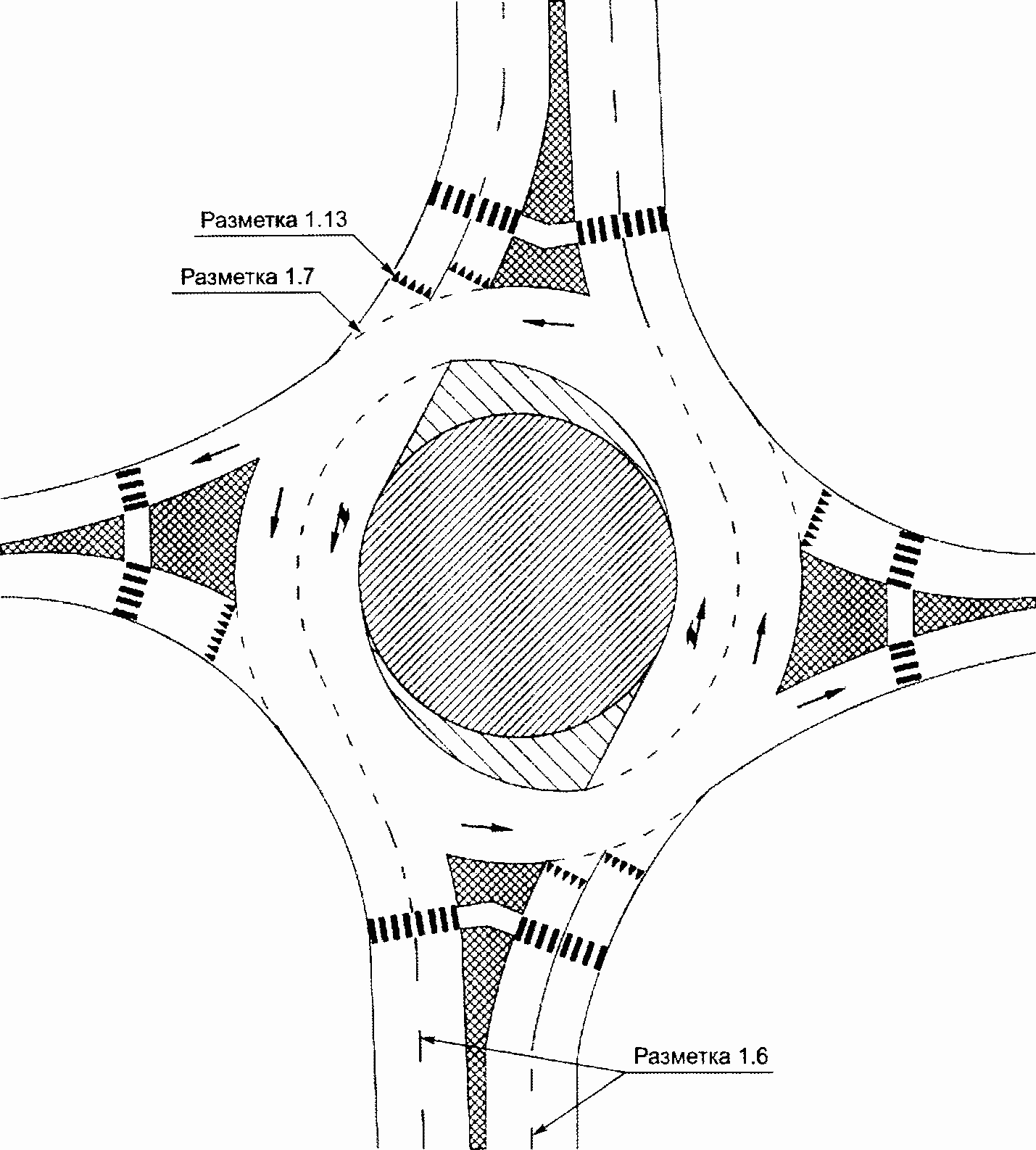 [1]. Приоритет автомобилей, находящихся на кольцевой проезжей части, как правило, следует подтверждать установкой перед въездом на кольцевую проезжую часть дорожного