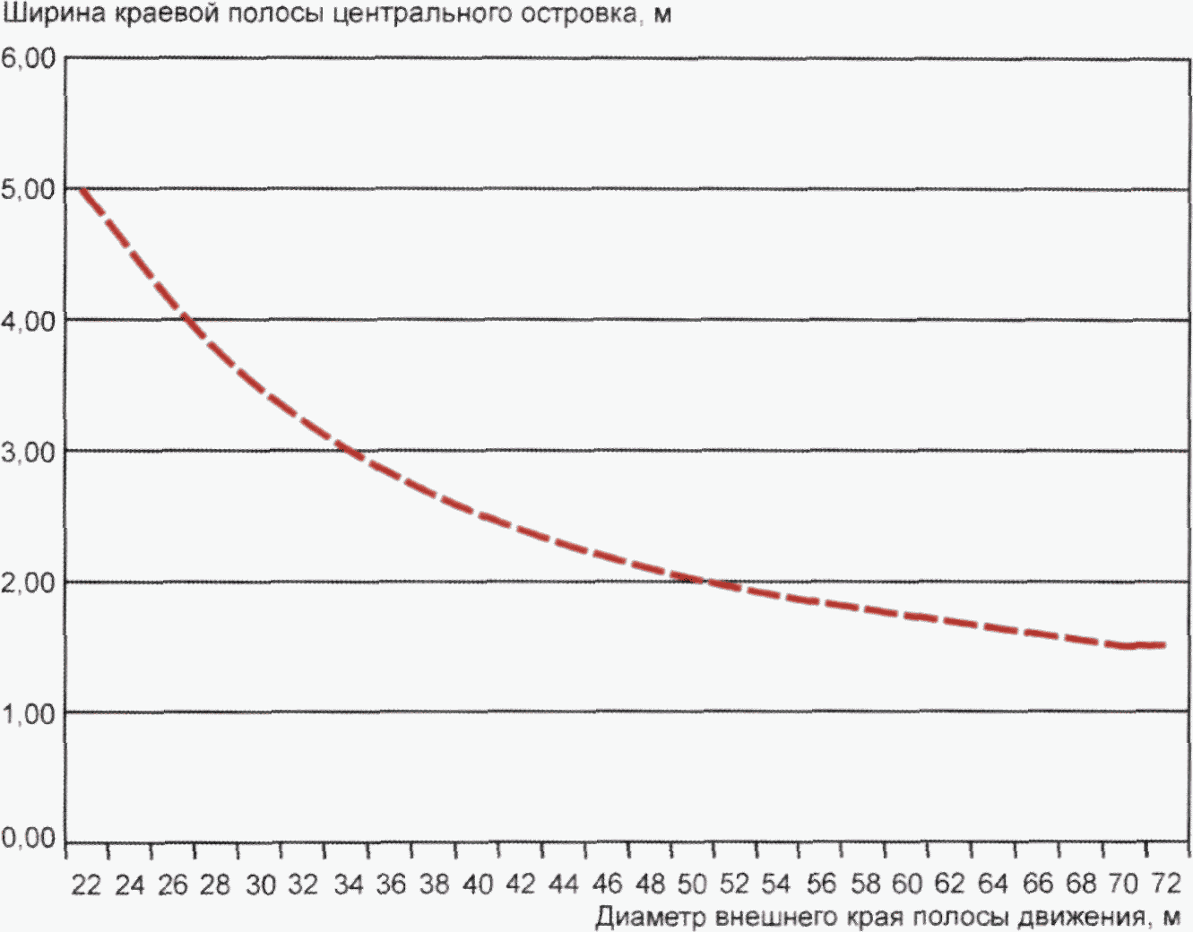 3.26 ширина кольцевой проезжей части: Сумма ширин полос движения, равная расстоянию от центрального островка до внешней кромки кольцевой проезжей части.