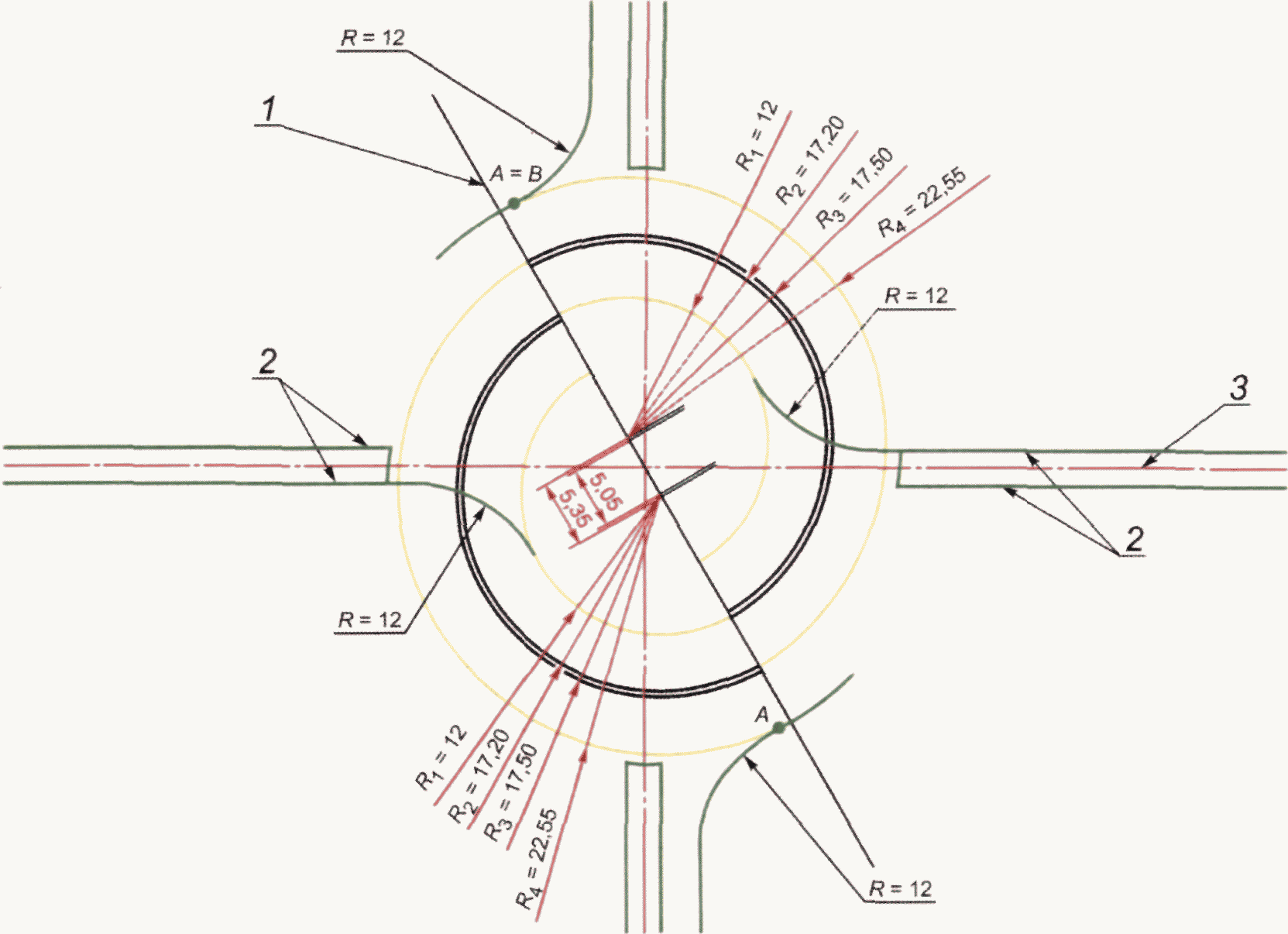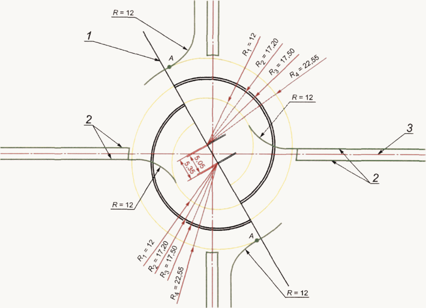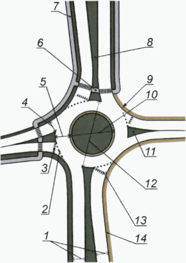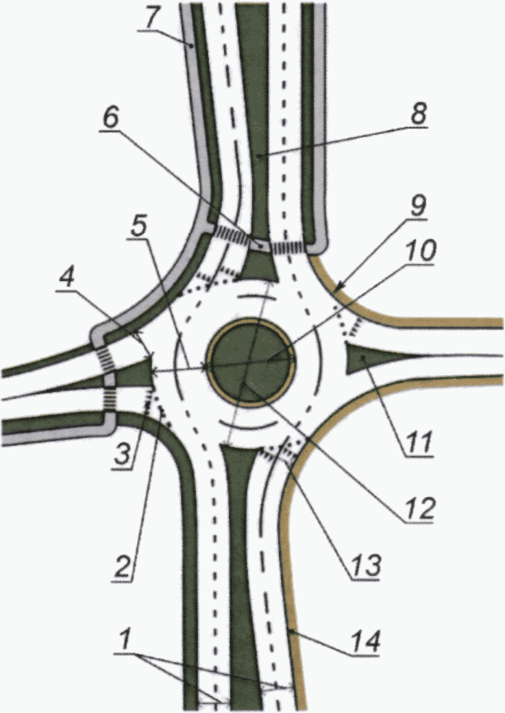 4.3 Основные планировочные элементы кольцевого пересечения приведены на