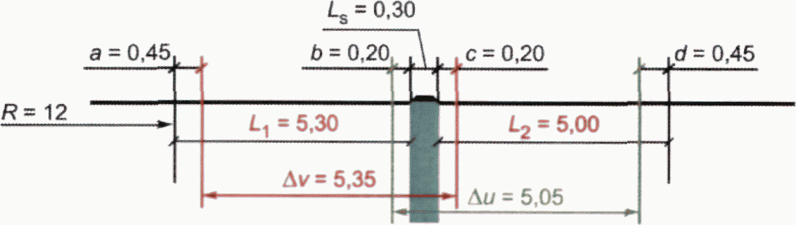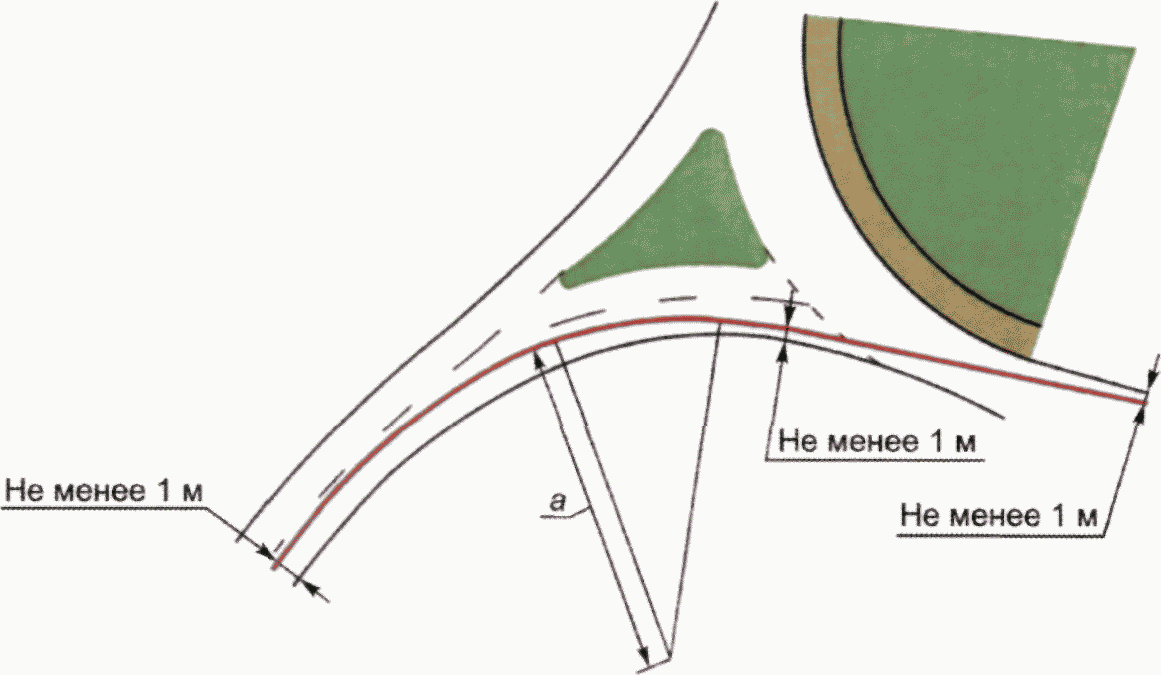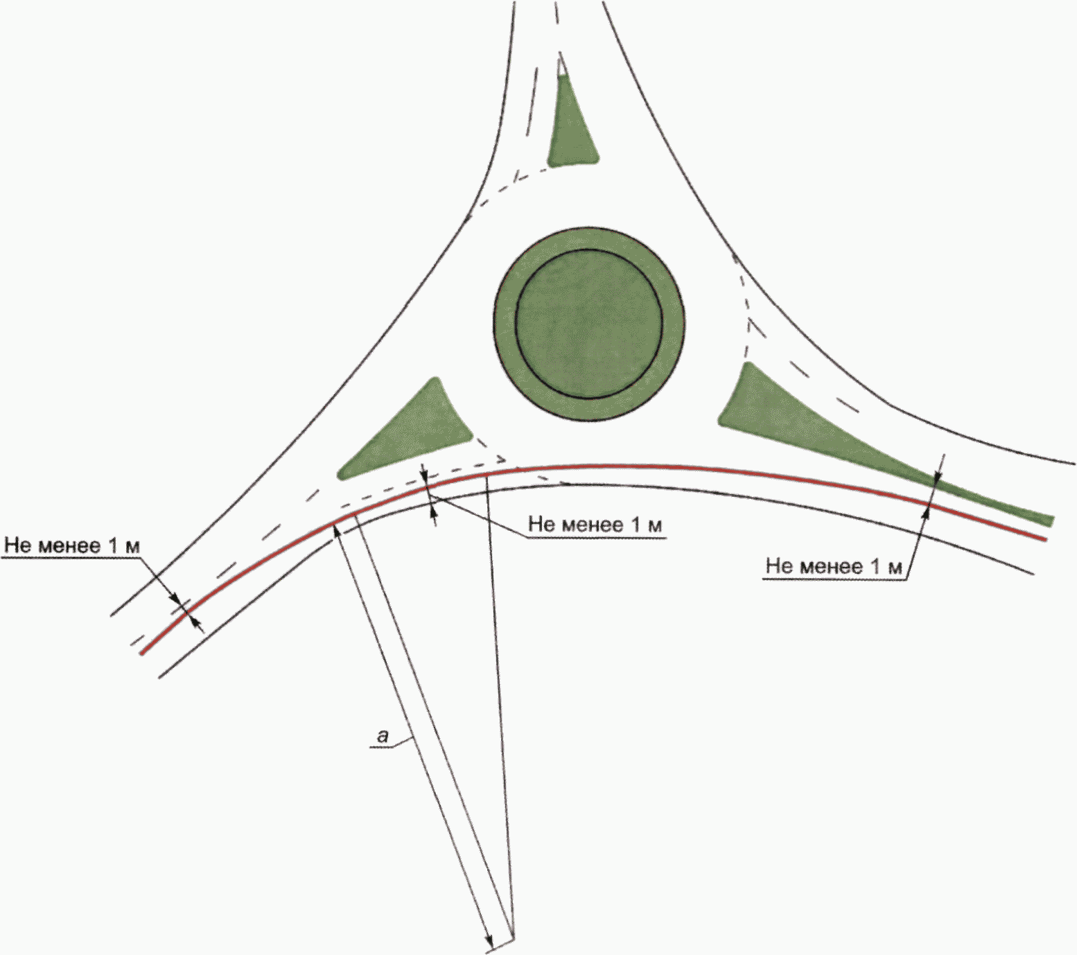 - расстояние от границы кольцевой проезжей части до стоп-линии светофорного объекта пешеходного перехода на выезде с кольцевого пересечения (рисунки Е.5 и