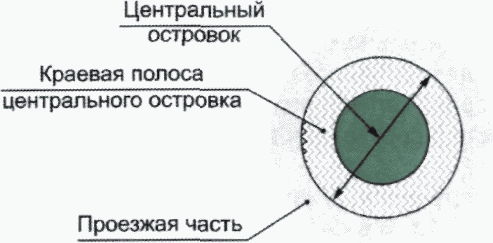 3.13 проезжая часть кольцевого пересечения: Проезжая часть, предназначенная для движения автомобилей при объезде центрального островка.