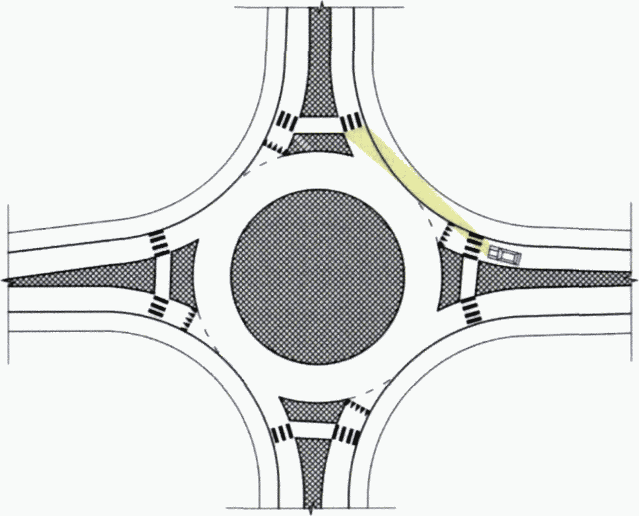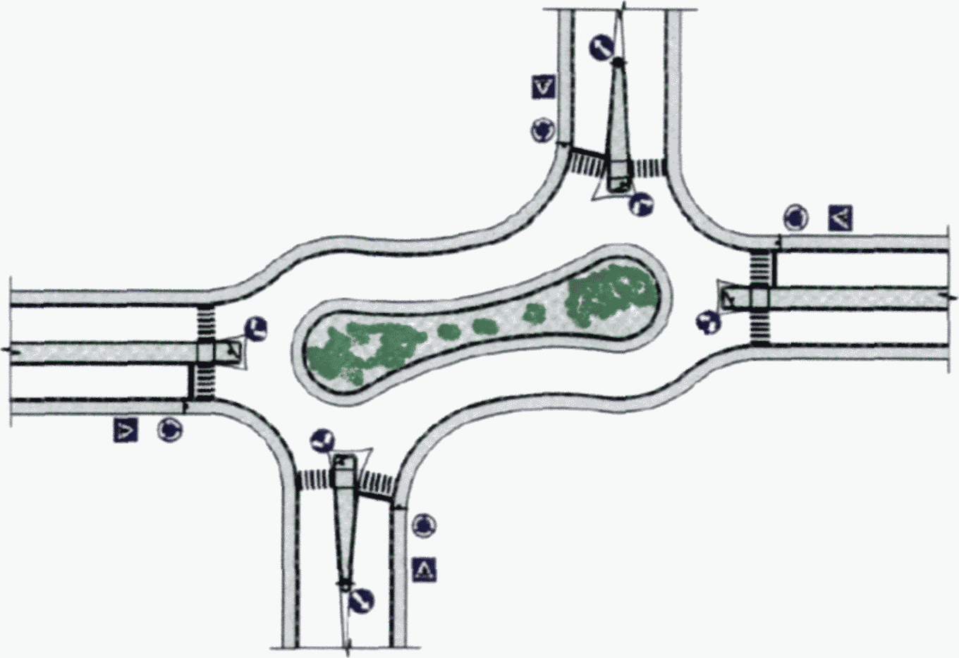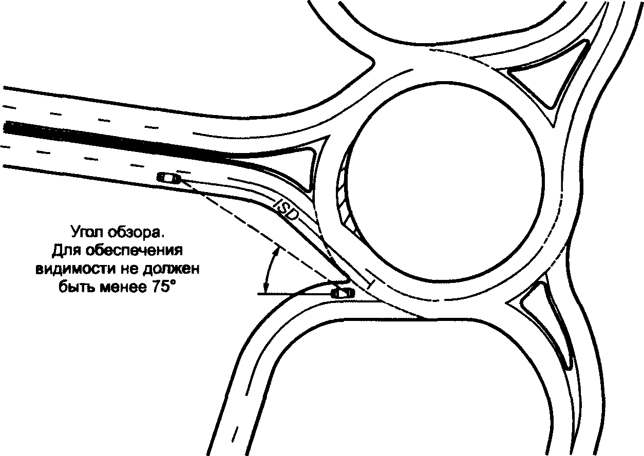 4.2 Кольцевые пересечения следует проектировать с приоритетом автомобилей, находящихся на кольцевой проезжей части в соответствии с