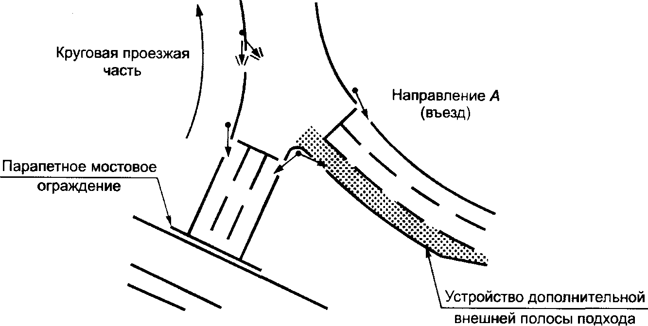 Е.4.3 Устройство дополнительной правой полосы на внешнем подходе, как показано на