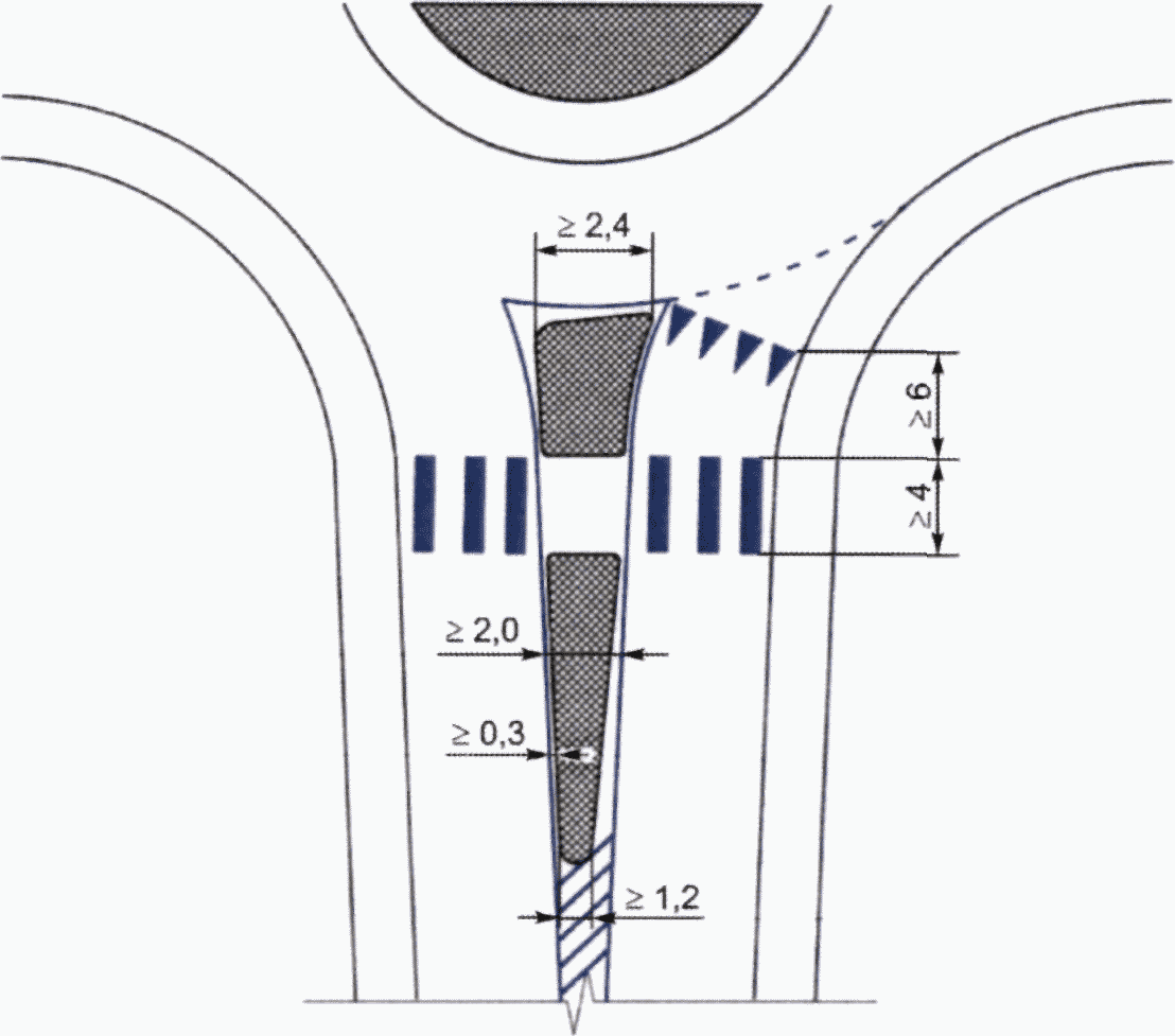 Е.4.6 При временном и косвенном светофорном регулировании изменение геометрических параметров кольцевого пересечения не допускается.