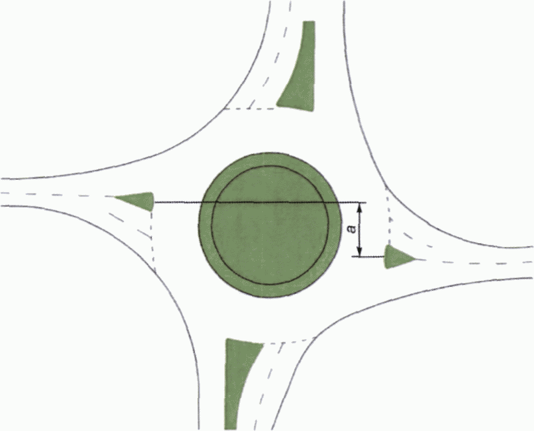 3.2 диаметр кольцевого пересечения: Диаметр внешней кромки кольцевой проезжей части.