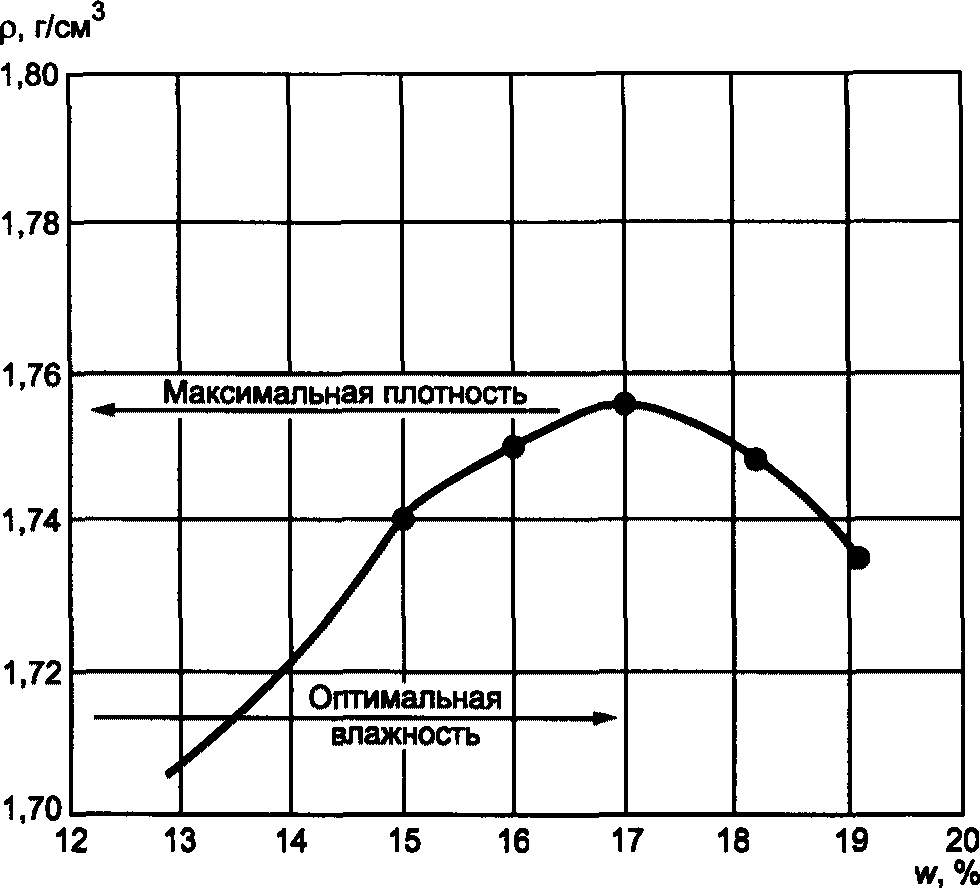 рисунок 4). По наивысшей точке графика для связных грунтов находят значение максимальной плотности