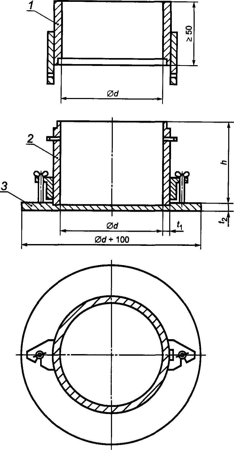 1 - удлинительное кольцо; 2 - цилиндрическая