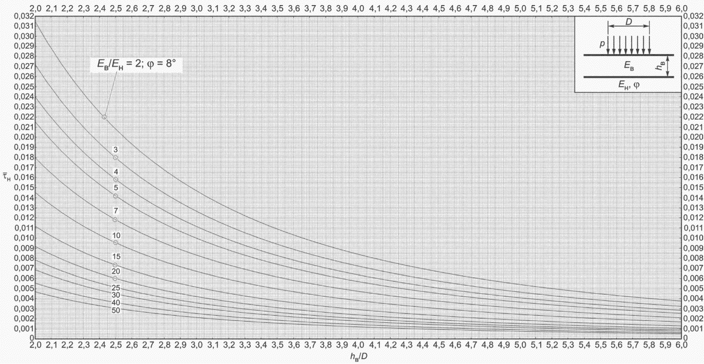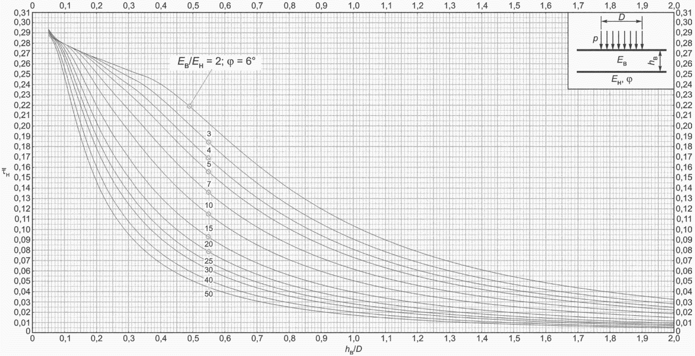 рисунок Е.52) определяют растягивающее напряжение в монолитном слое основания (асфальтобетоне SP-22Э) от единичной нагрузки
