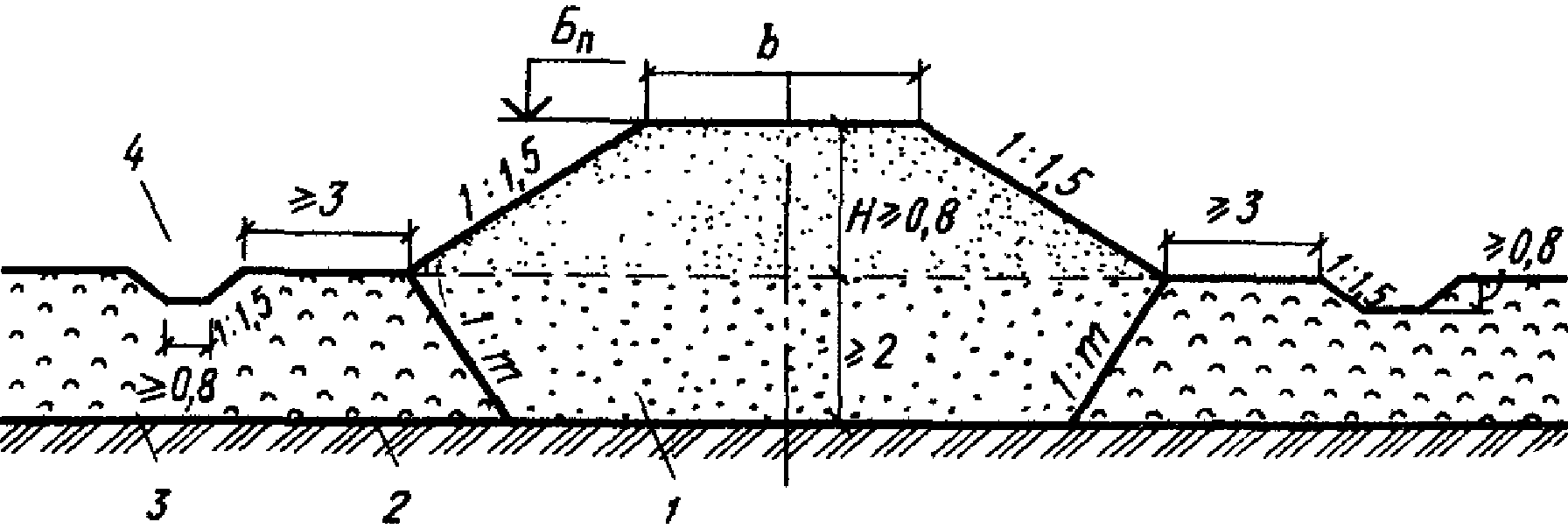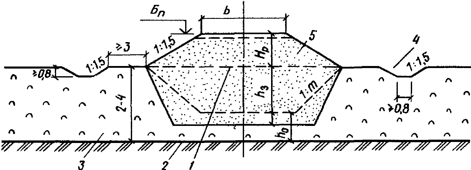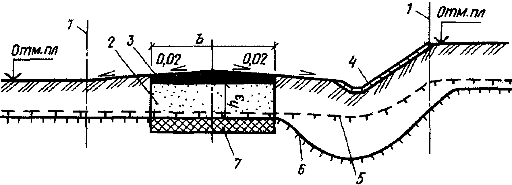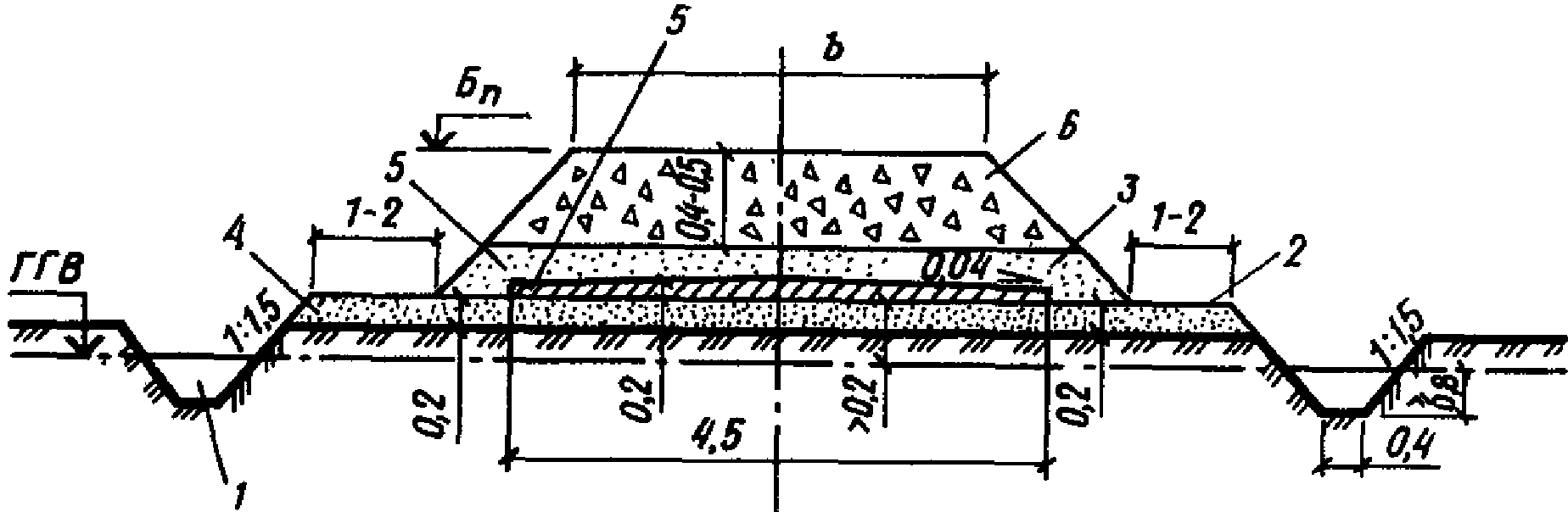 1.15. При инженерно-геологических изысканиях для проектирования земляного полотна автомобильных дорог на территориях промышленных предприятий особое внимание следует обращать на наличие возможных источников увлажнения земляного полотна сточными водами, и при необходимости разрабатывать мероприятия, обеспечивающие его защиту от переувлажнения. К таким мероприятиям относятся: понижение уровня грунтовых вод дренажными устройствами, устройство морозозащитных слоев из пенопласта, геотекстилей, изолирующих водонепроницаемых прослоек, замена пучинистого грунта на дренирующий слой, организация стока производственных и поверхностных вод.