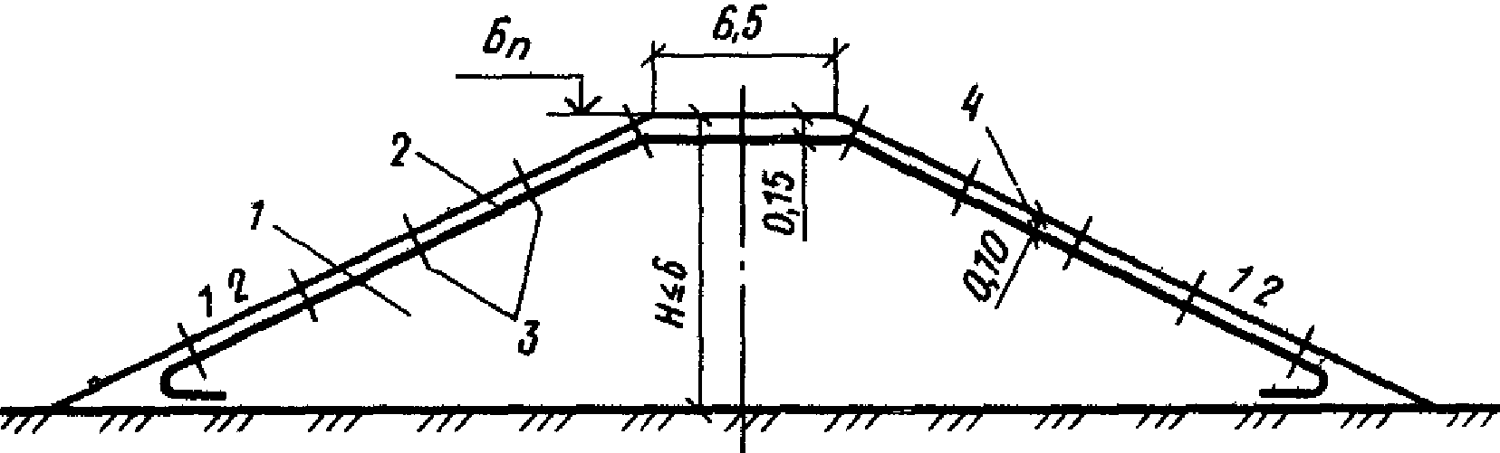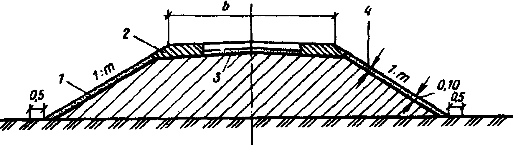 верхний почвенный слой, содержащий в большом количестве корни растений, - для насыпей высотой до 1 м;