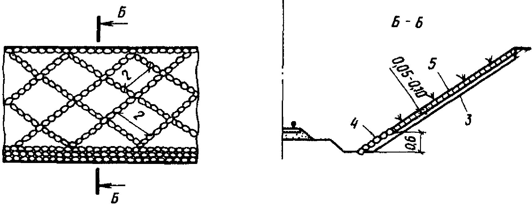 После отработки скального откоса с применением контурного взрывания и определения систем трещин назначают бурение скважин (вкрест простирания основной системы трещин) диаметром 55 мм на глубину 5 - 10 м с последующей установкой металлических анкеров конструкции "Эстонский сланец", на которые навешивают металлическую сетку. Перед установкой сетки поверхность скальных грунтов обрабатывают пескоструйным аппаратом со сжатым воздухом, а затем - водой. На поверхность сетки наносят специальными установками слой бетона толщиной 3 - 5 см.