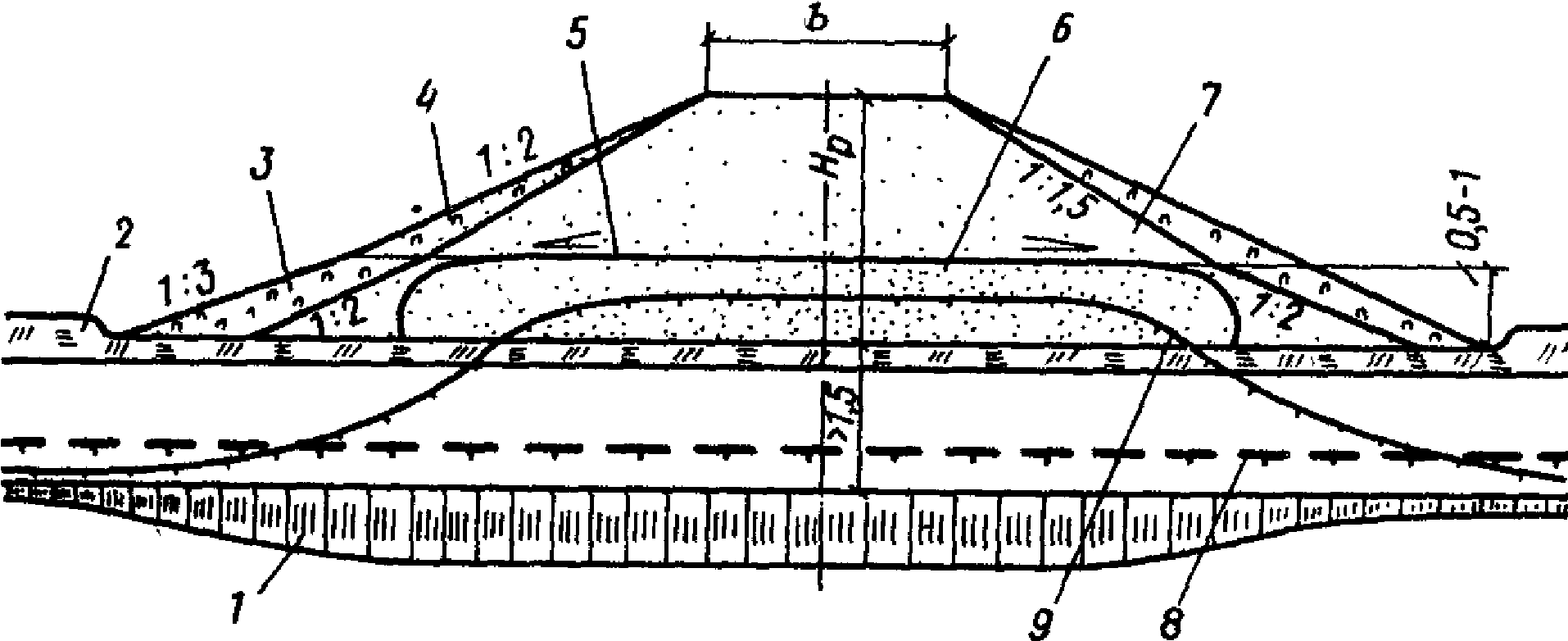 1.10. По данным инженерно-геологических изысканий должны быть разработаны комплексные мероприятия по прогнозированию водно-теплового режима грунтов основания и тела насыпи с целью предупреждения недопустимых деформаций и нарушения устойчивости дорожного полотна.