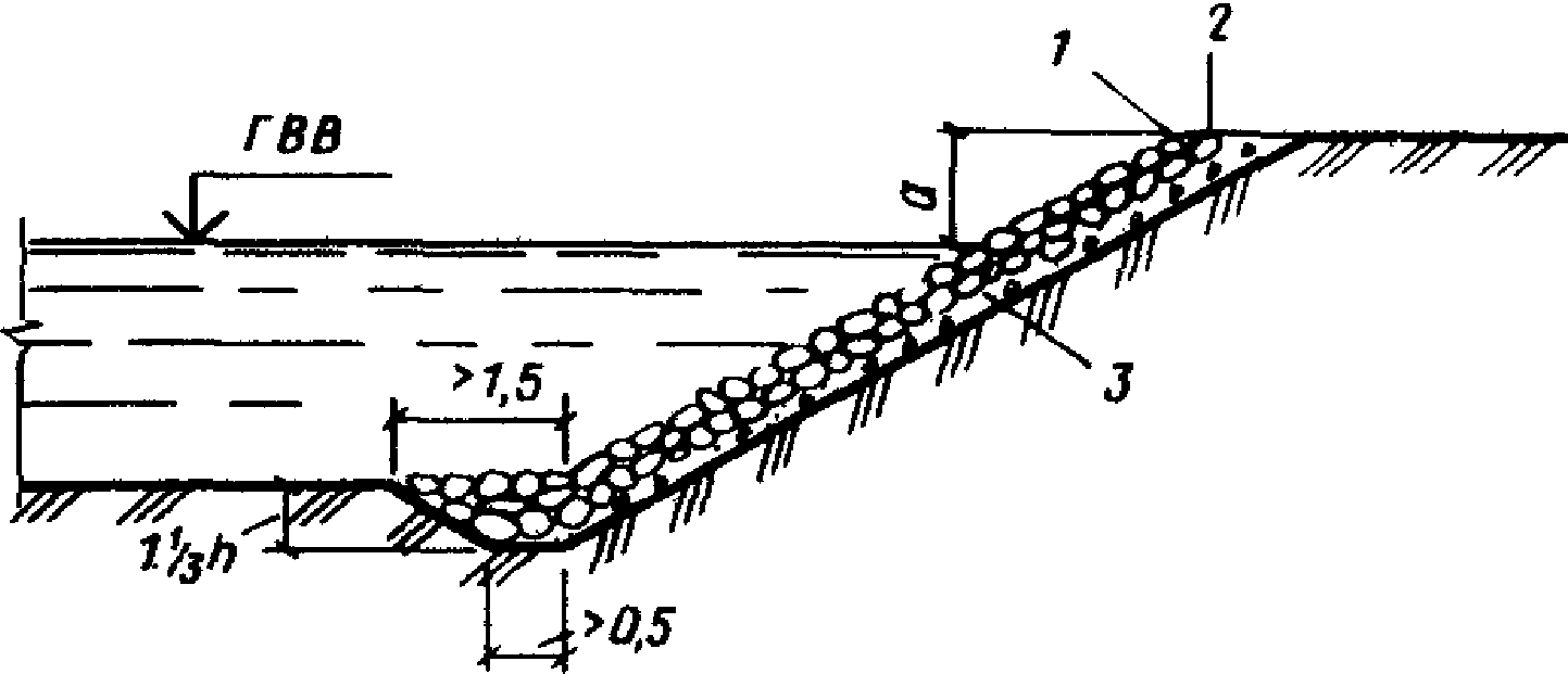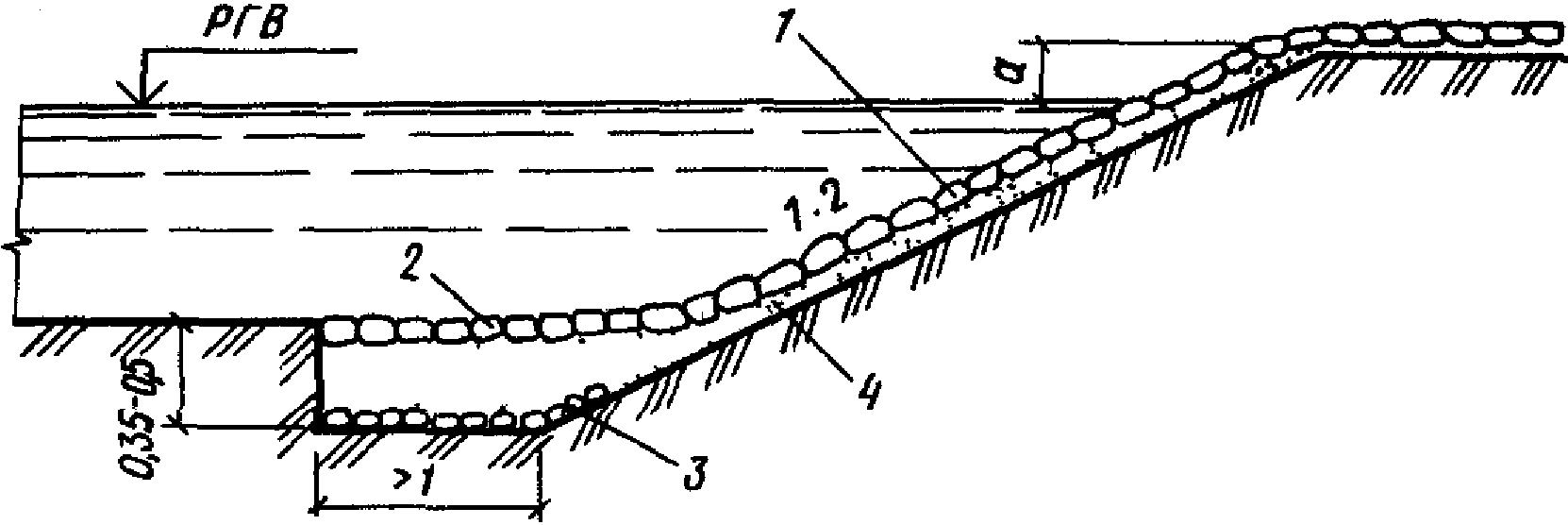 При отсыпке грунта в воду следует применять скальные или крупнообломочные грунты, песок крупный или средней крупности.