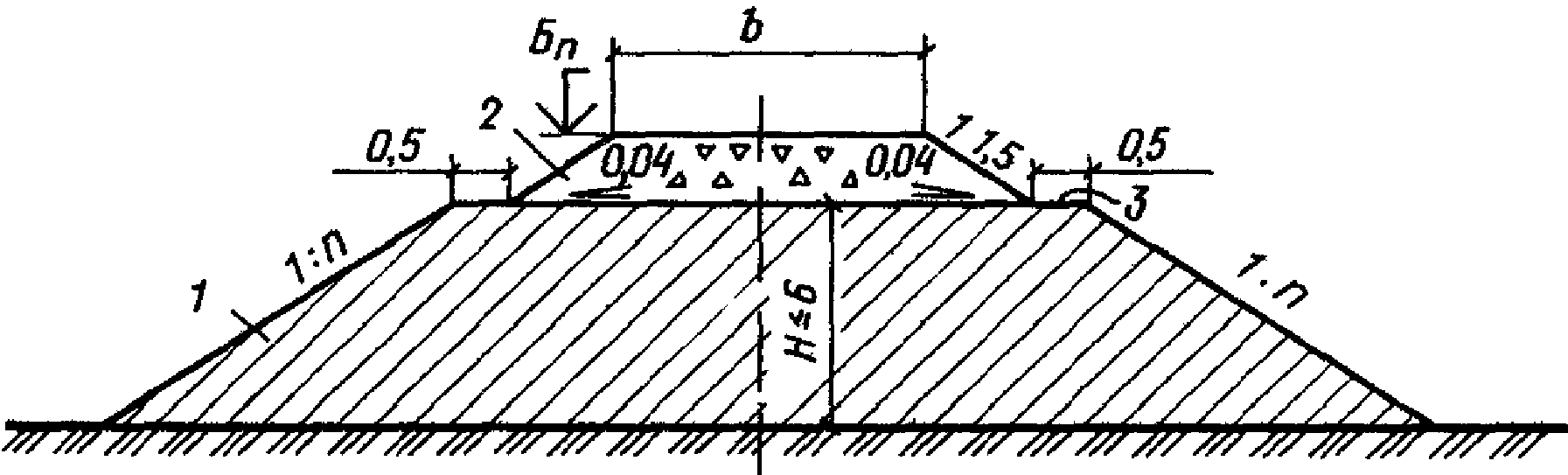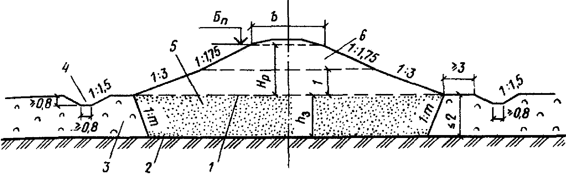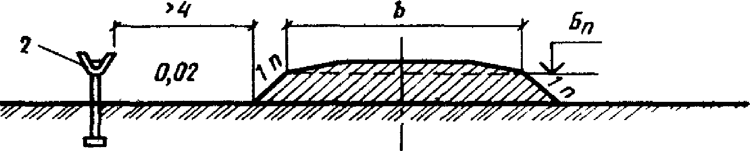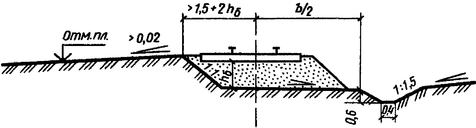 - высота насыпи, определяемая по продольному профилю дороги, считая по оси над поверхностью болота вместе с балластной призмой или дорожной одеждой, м;