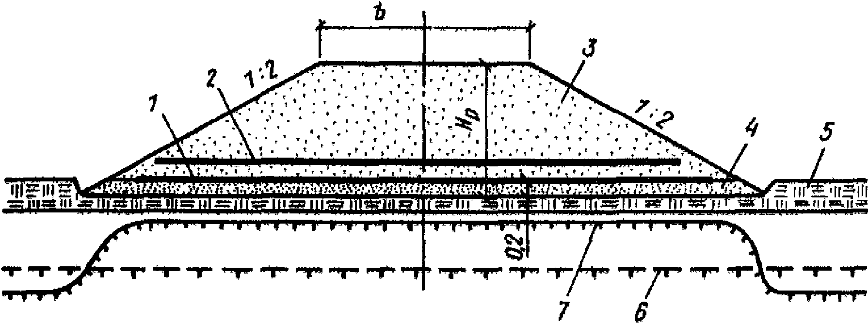 с целью усиления устойчивости насыпи на слабом основании (торф, ил, сапропели);