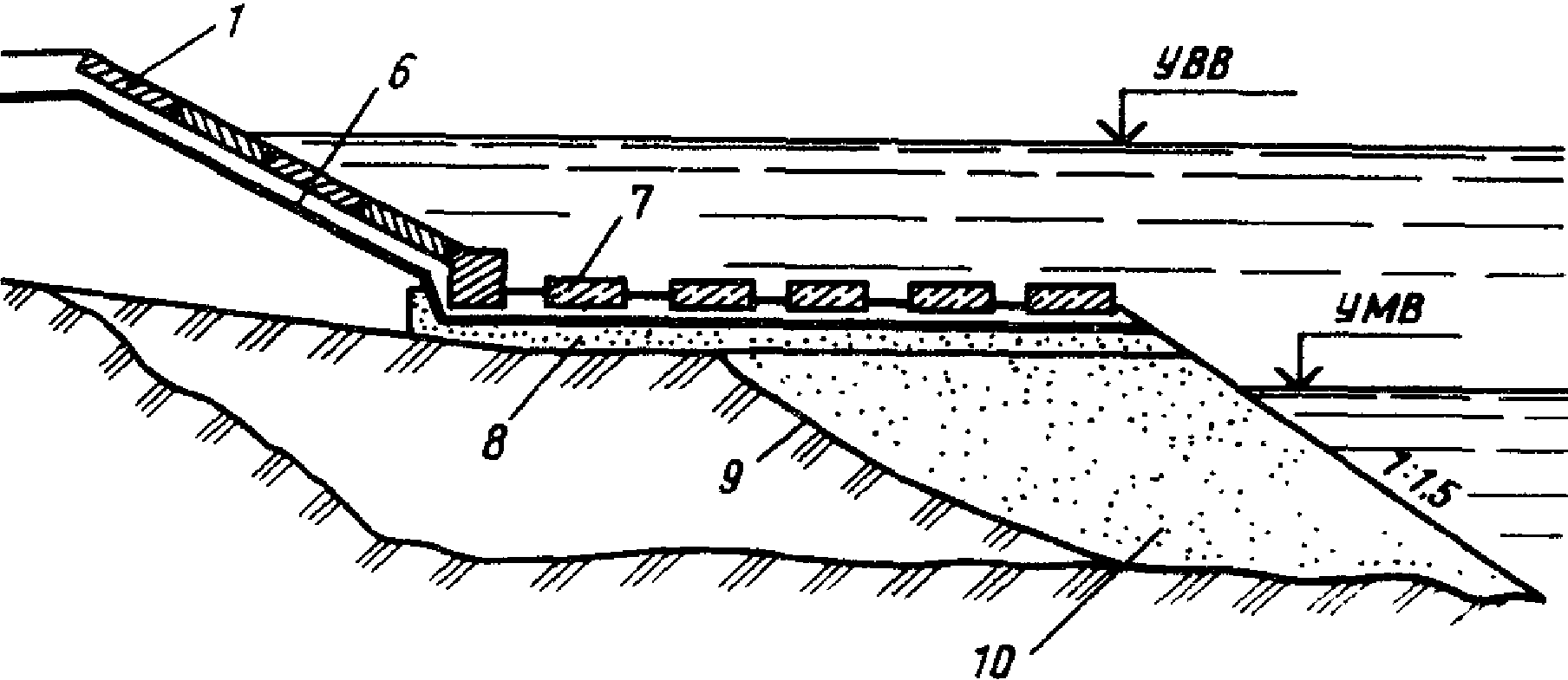 Возможные разрушения укрепления подтопляемых откосов насыпей | Насыпи, дамбы, контрбанкеты | Вынос и суффозия грунта | Укладка нетканого материала в качестве фильтра |