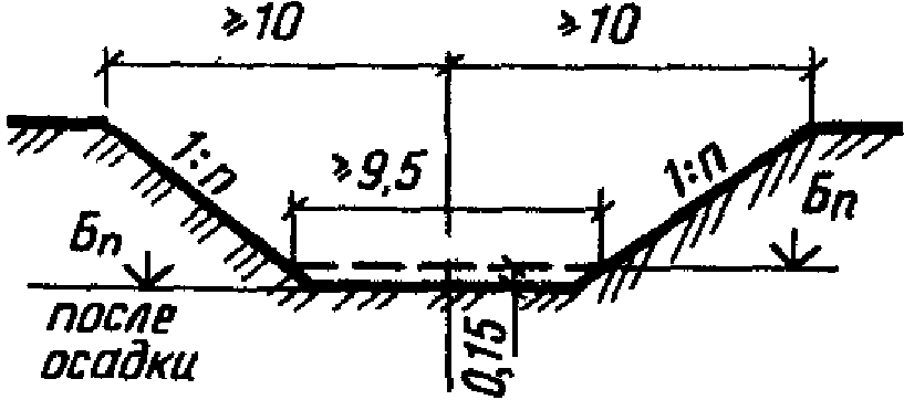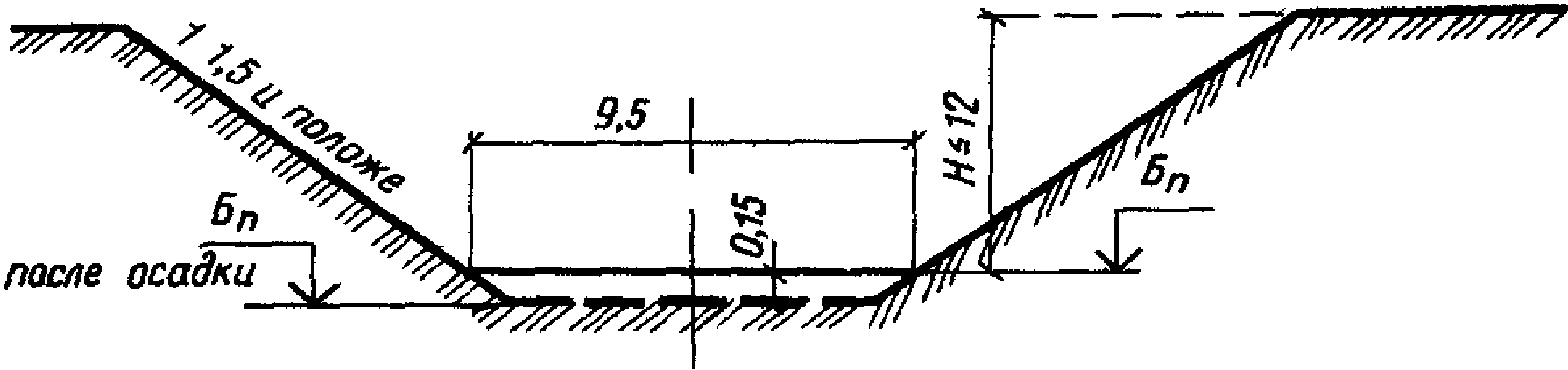 При расчетах принято: заложение откосов насыпи более 1:1,5; ширина насыпи поверху 5 - 10 м; основание насыпи сложено торфом, деформация которого принимается за счет сжатия при ограниченном боковом расширении.