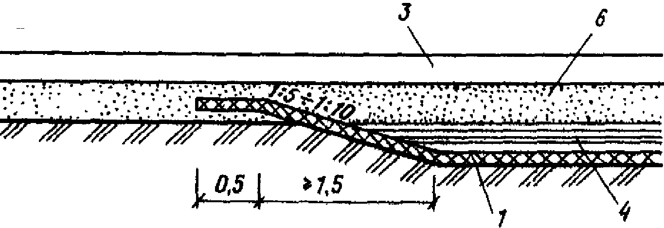 При невозможности обеспечения требуемой плотности грунтов основной площадки земляного полотна они должны быть армированы геотекстилем или закреплены эффективными способами и материалами на глубину до 1 м от проектной бровки.