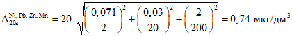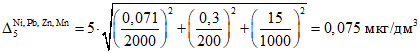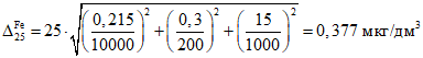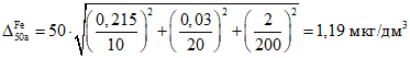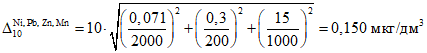 А.10.10 Расчет погрешности приготовления рабочего градуировочного раствора с массовыми концентрациями 200,0 мкг/дм3 железа и 40,0 мкг/дм3 никеля, свинца, марганца, цинка.