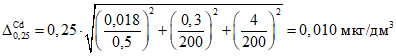 А.12.4 Расчет погрешности приготовления рабочего градуировочного раствора с массовой концентрацией 0,25 мкг/дм3 кадмия