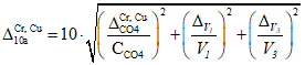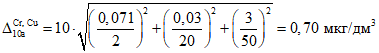 А.11.6 Расчет погрешности приготовления рабочего градуировочного раствора с массовой концентрацией 10,0 мкг/дм3 хрома и меди