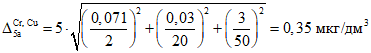 А.11.10 Расчет погрешности приготовления рабочего градуировочного раствора с массовой концентрацией 30,0 мкг/дм3 хрома и меди