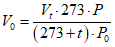 где Vt - объем взятого на анализ атмосферного воздуха при температуре t и давлении P в месте отбора пробы, дм3;