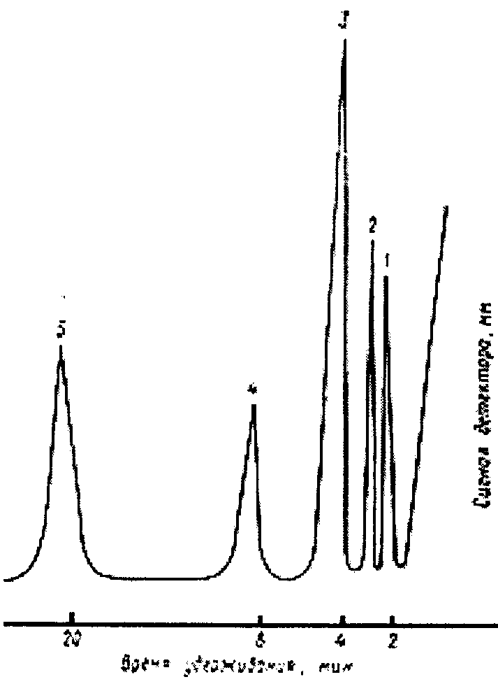 1. Для определения газохроматографических параметров колонок и детекторов несколько раз вводят в испаритель хроматографа по 1 мкл стандартных растворов ацетилпроизводных хлор- и нитрофенолов и алкилфенолов и рассчитывают: