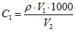 V2 - вместимость мерной колбы, см3.