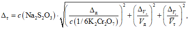 А.8.2.1 Расчет погрешности приготовления и установления концентрации раствора тиосульфата натрия