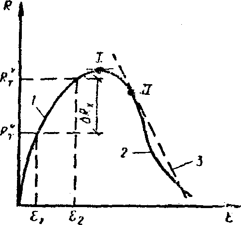 II - точка неустойчивого состояния бетона; 1 - восходящая